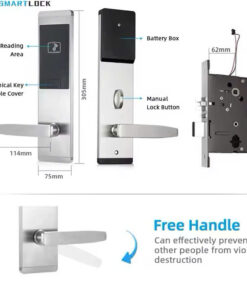 – Đầu đọc thẻ tích hợp bên trong khóa, đọc thẻ mở cửa từ khoảng cách 1cm – 3cm bằng công nghệ không tiếp xúc.